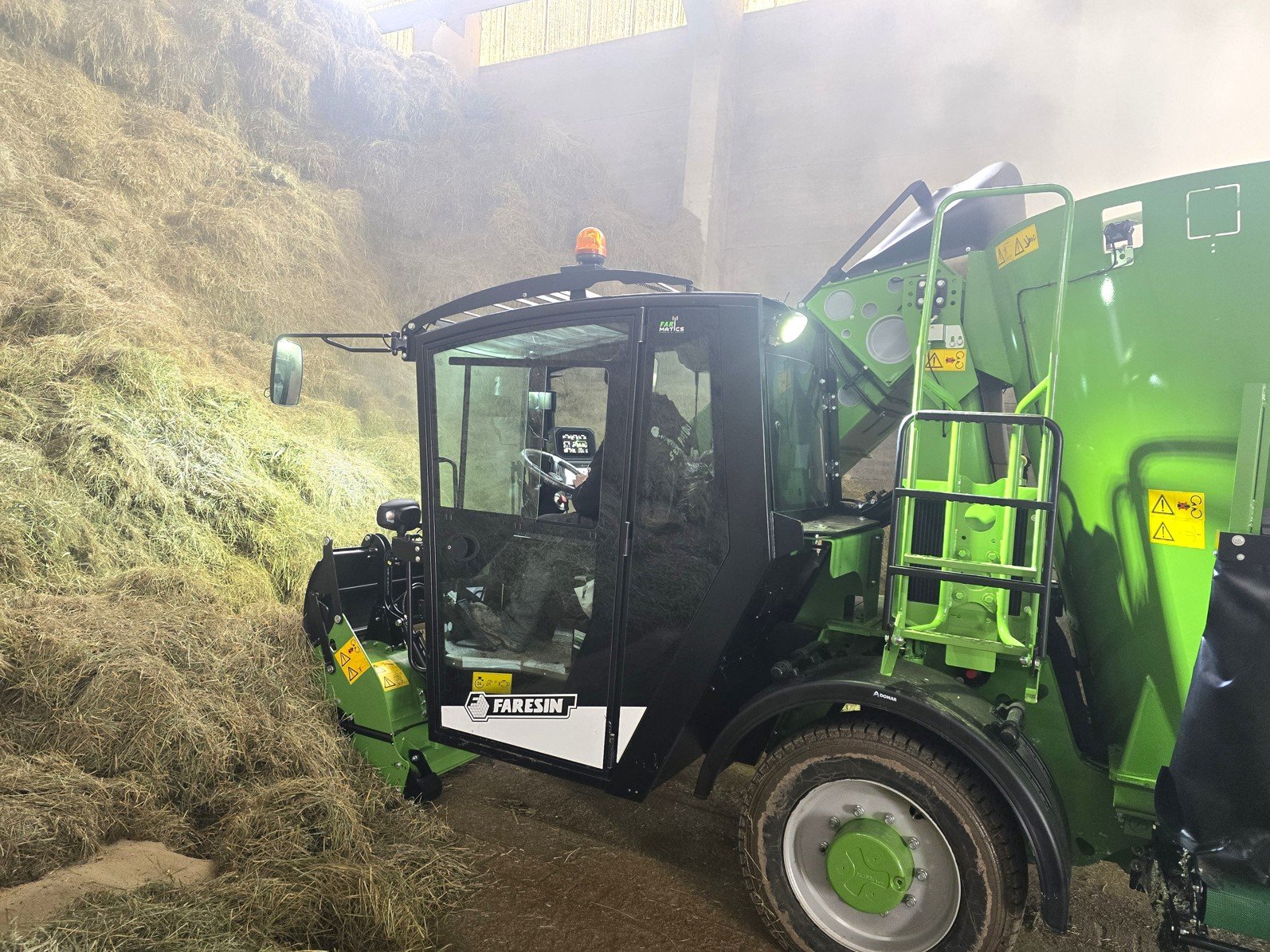 V březnu jsme na Vysočině uvedli do provozu další nový FARESIN LEADER, tentokrát v oblíbené kompaktní variantě PF 2.14 ECOMODE. Stroj s maximální pojezdovou rychlostí 40 km/h bude krmit dvě střediska. Výbavu stroje tvoří mimo jiné váha s automatickým přenosem dat, integrovaný štípač slámy, nerezová míchací vana a hardoxové míchací šneky.
